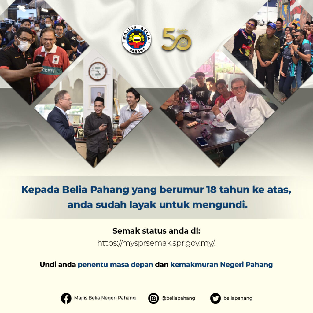 Kepada Belia Pahang yang berumur 18 tahun ke atas, anda sudah layak untuk mengundi.